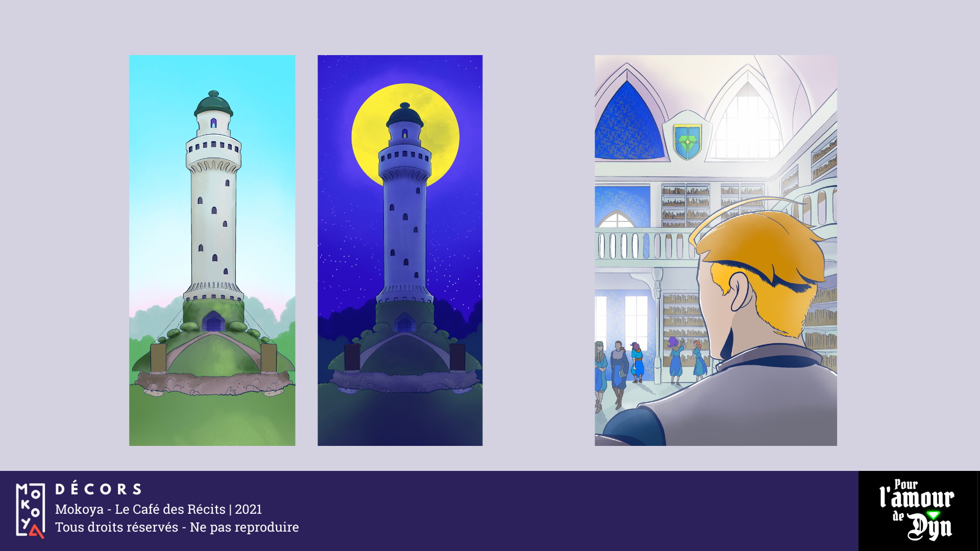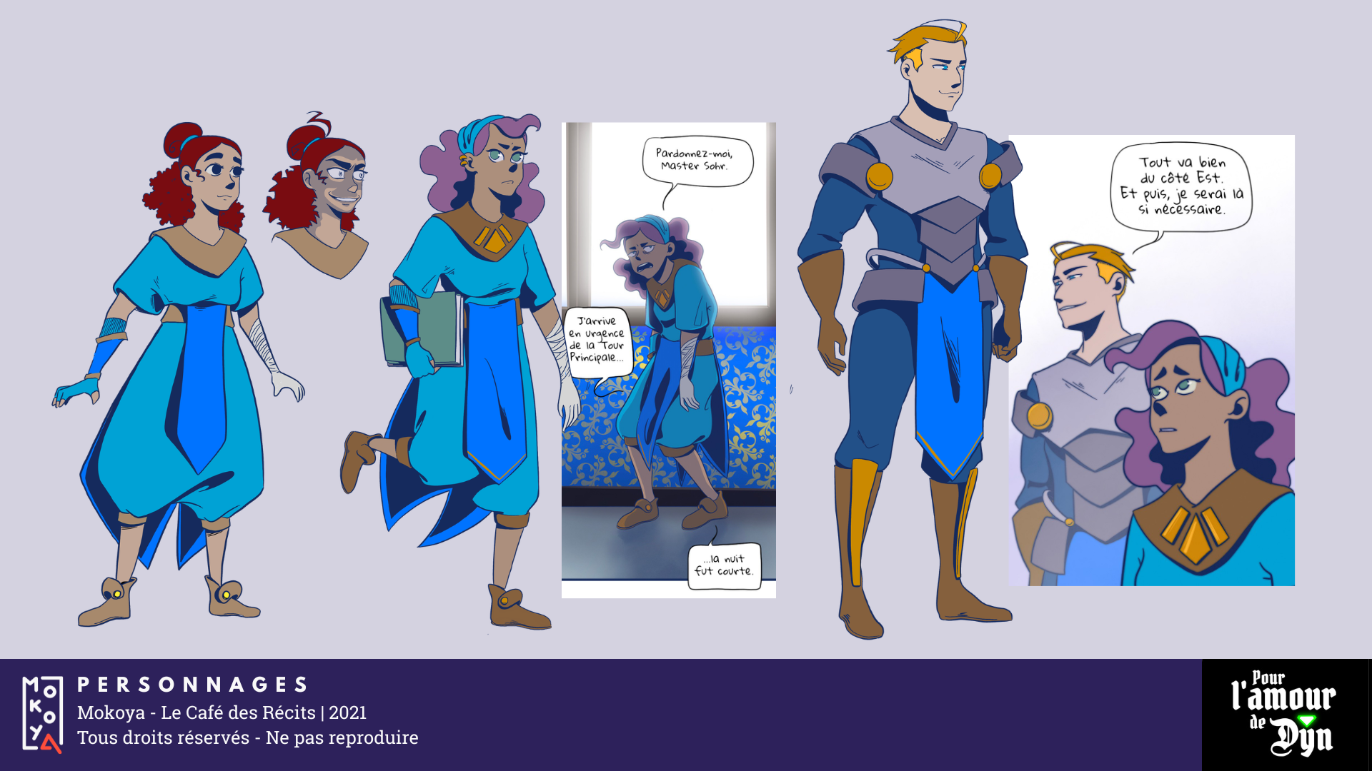 Pour l’amour de Dyn est un webtoon dont je n’ai publié qu’un épisode, dans une volonté de m’essayer à des mécaniques du genre de la romance, ainsi que d’expérimenter une chaîne de production plus pertinente dans un contexte de webtoon. Le projet est en pause depuis 2021.